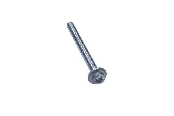 This is a one-time-use M8x85mm Torx head bolt. It is a long torque-to-yield (TTY) or “stretch” bolt used in various applications, including securing the A/C compressor, alternator bracket, and certain areas of the oil pan, where a high and consistent clamping load is critical.